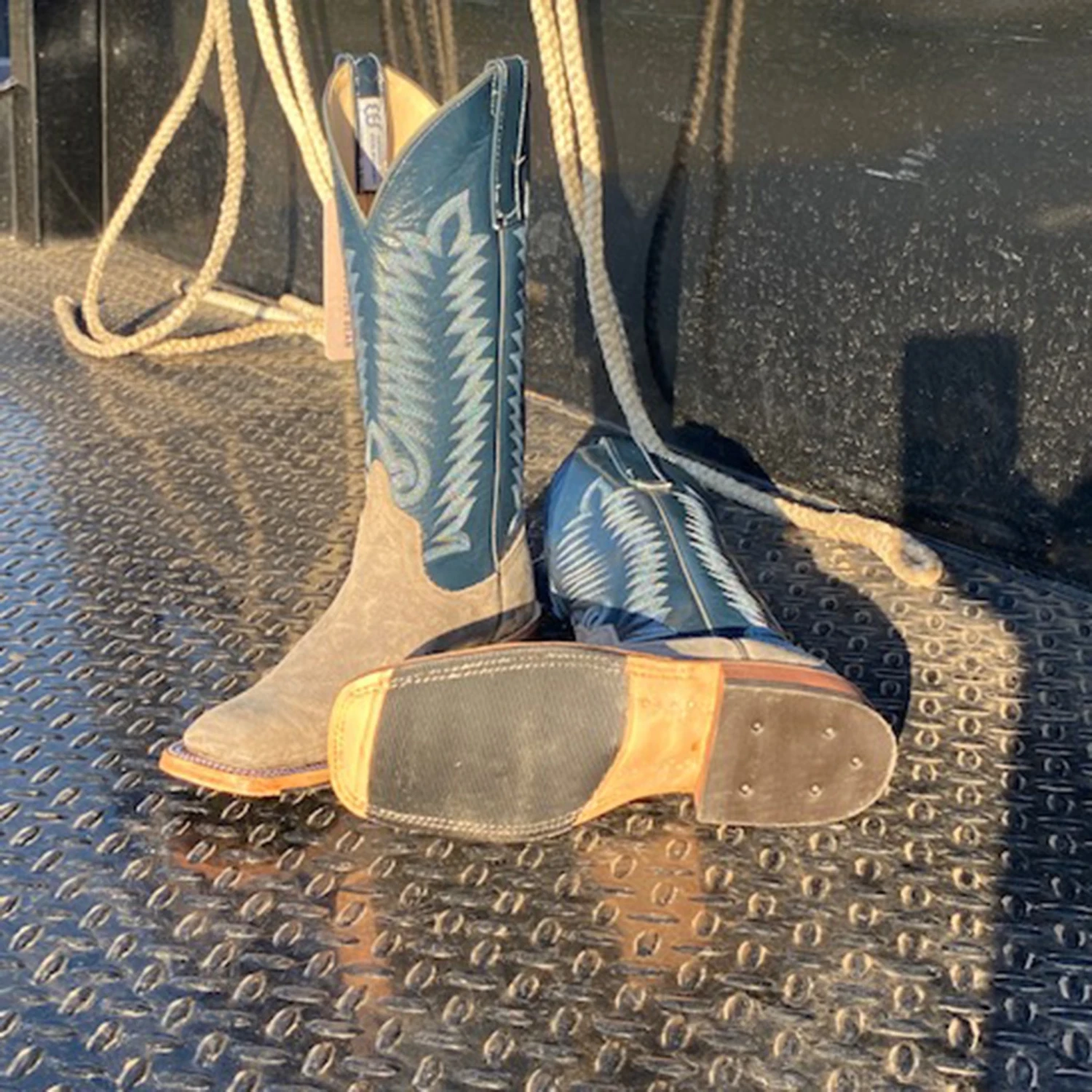 A stunning pair of Grey Waxy Kudu Boots from Anderson Bean! These boots feature beautiful regal blue top with light and baby blue stitching. They are more than just pretty,  they are tough! Kudu is such a special leather, it’s very durable and ages amazingly! You can not go wrong with this amazing pair of boots!