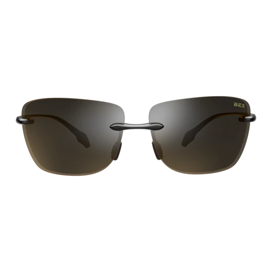 - Color: Glossy black nylon frame, Vibrant Brown lens with BEX Slash, and brown nose pads.
