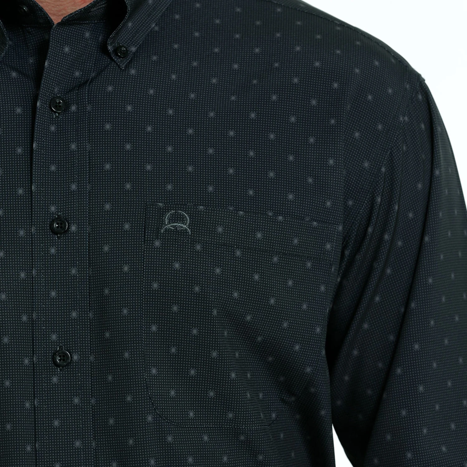 This classic cotton plain weave engineered by Cinch offers up a solid teal base with a side of geometric trim. Design details include an open left front pocket with logo embroidery and trendy white square buttons.