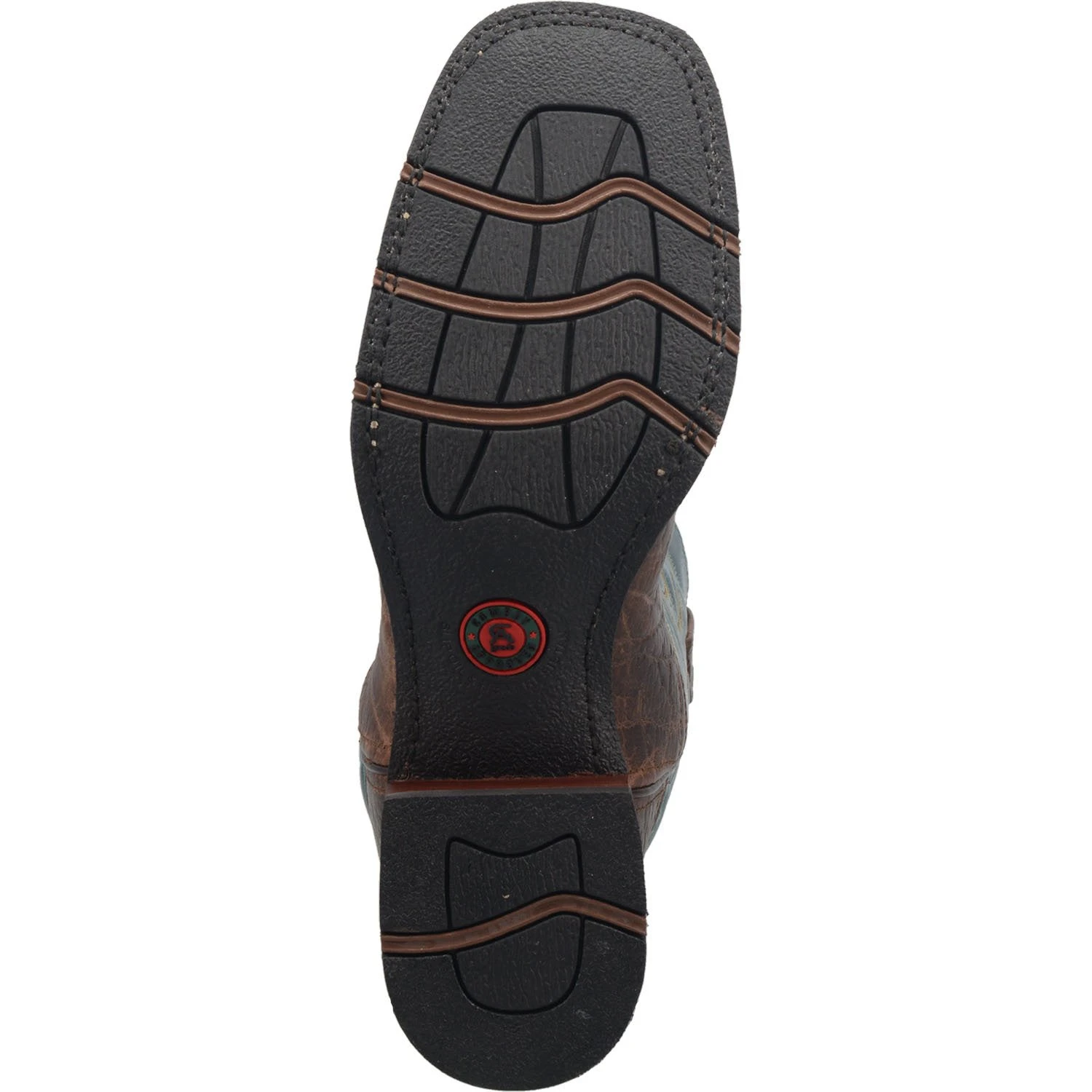 This men’s square toe boot from Dan Post has a soft brown leather toe and a teal shaft with bright colored stitching! The removable orthotic is very comfy, you’ll be walking on clouds!Â