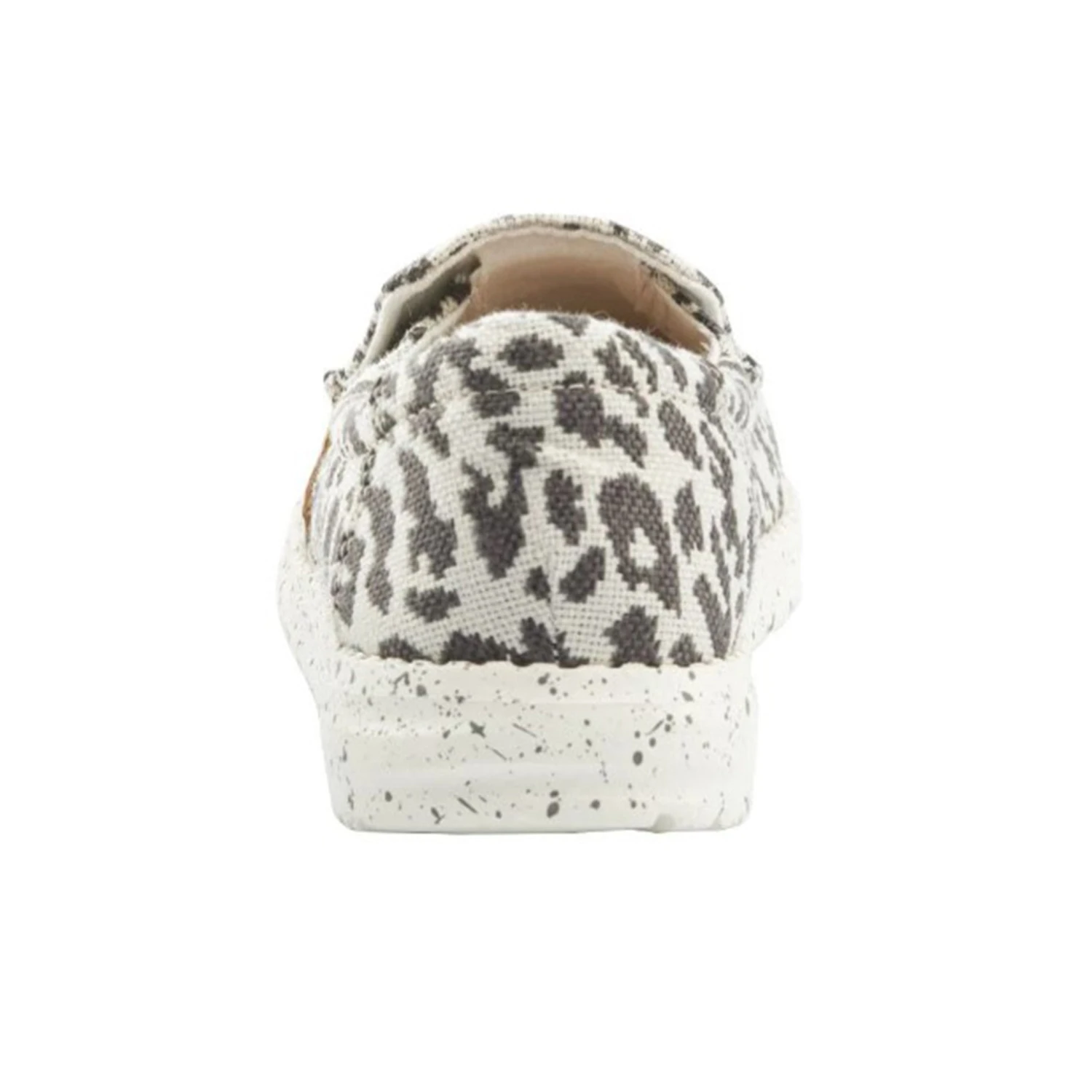 These women’s Hey Dude slip on shoes feature a grey cheetah print throughout! Hey Dude shoes are very comfortable and light weight!Â