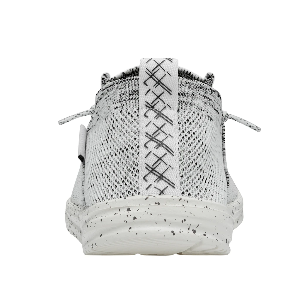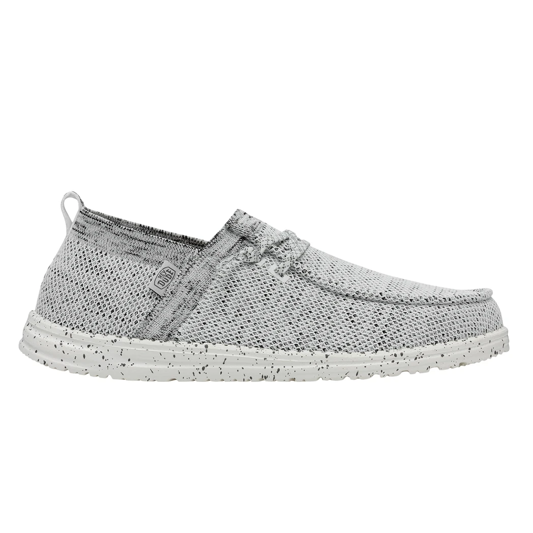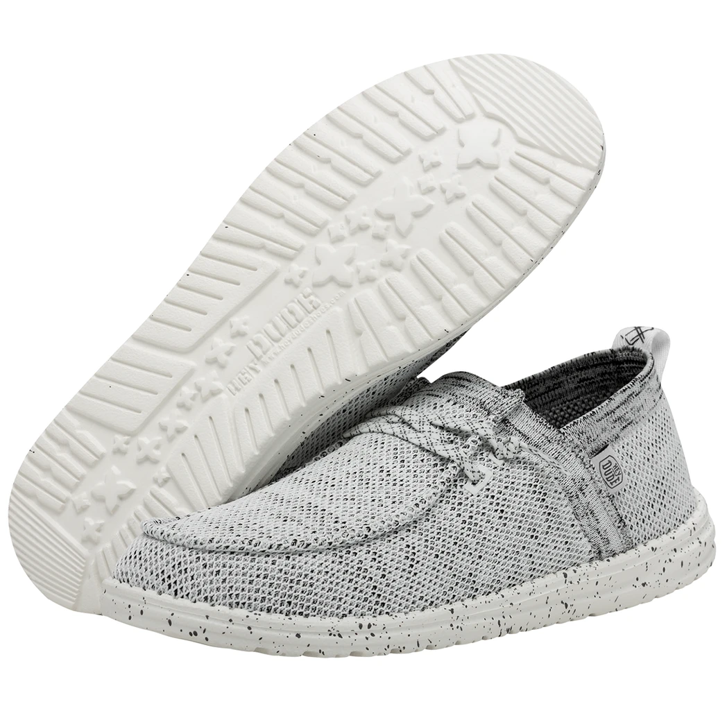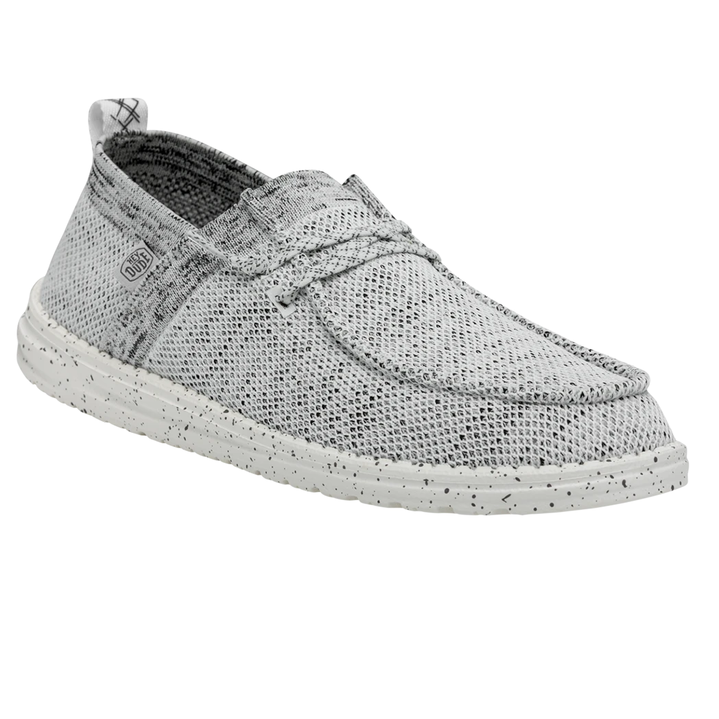 They Hey Dude Wally Halo Stone White shoe, utilizes recycled fibers, to give you a soft and breathable feel with all day comfort. The Halo features the easy-on system with cotton laces and an ultralight outsole. Great for the lake or beach these shoes dry out fast and keep a sock like fit to your foot!Â
