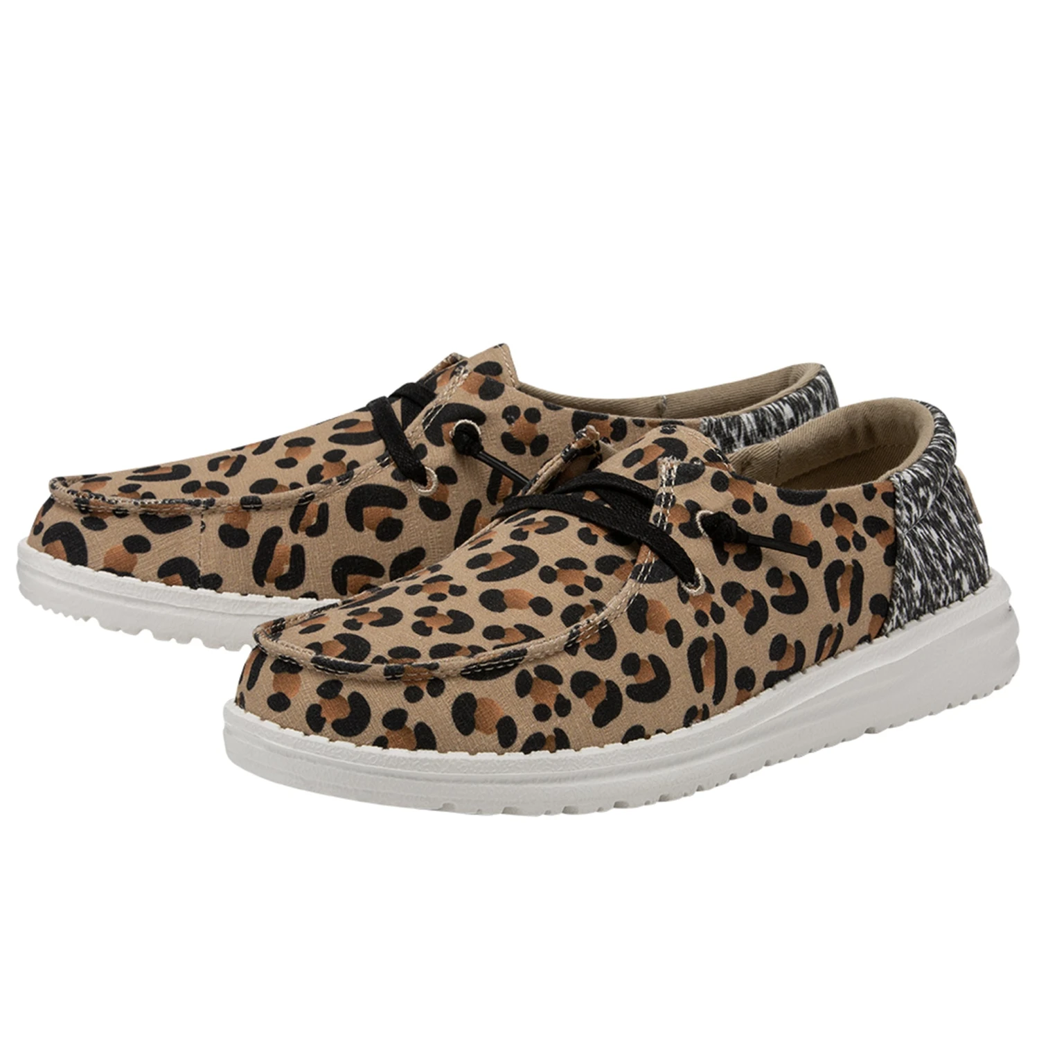 Take a walk on the wild side in these new “Cheetah Collage” shoes from Hey Dude! How fun are these double pattern dudes, with the cheetah print on the front and a black/white funky pattern on the heel. They feature the famous flex and fold technology, ultralight outsoles, and have removeable memory-foam insoles. They feature the popular easy-on system with elastic laces, that fits in perfectly with our busy schedules.Â