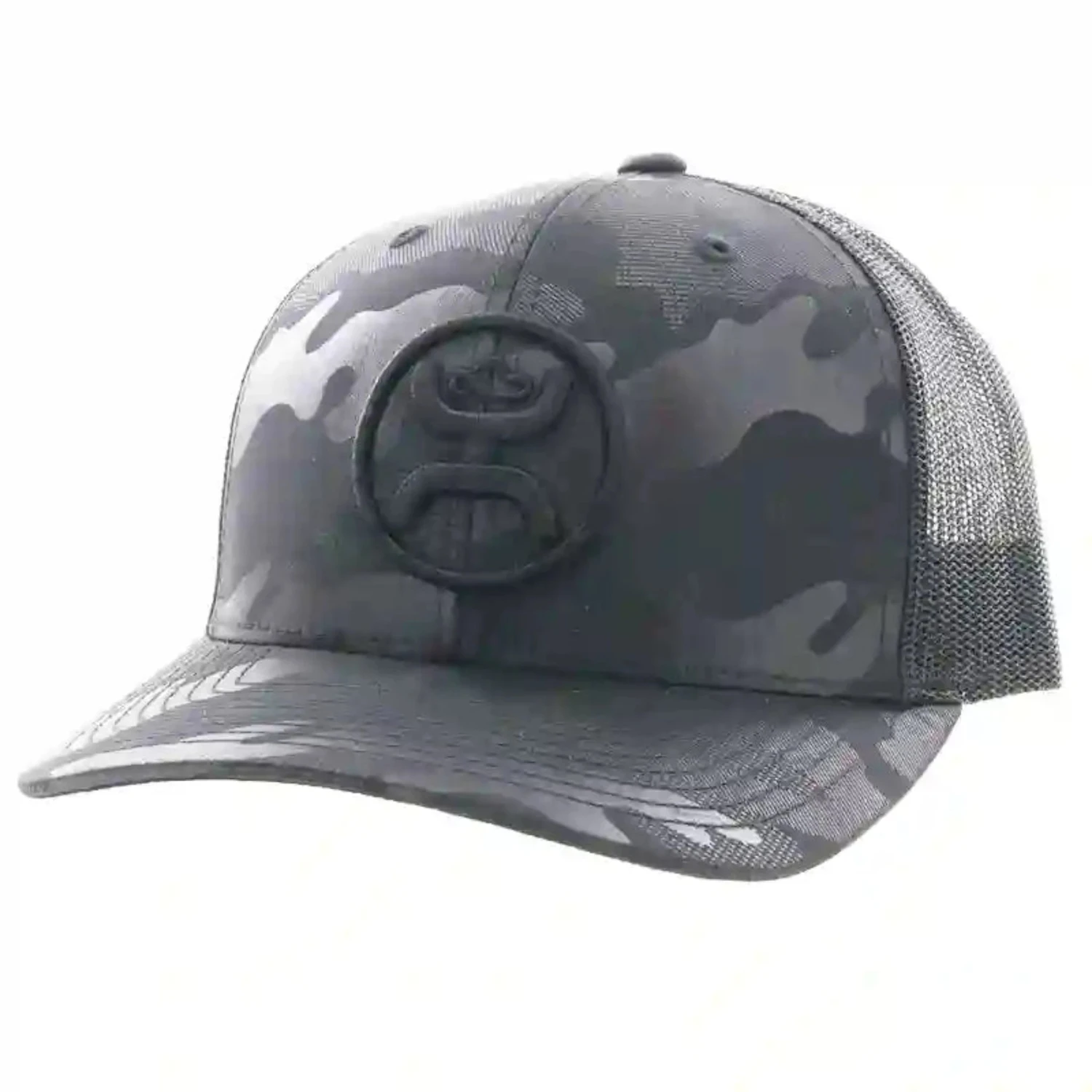 This unique Hooey cap is made with a tone on tone black on black camo material. Heavy embroidered black Hooey logo gives a 3-dimentional look. Available in a mid-profile 6-panel strap back with a curved bill.