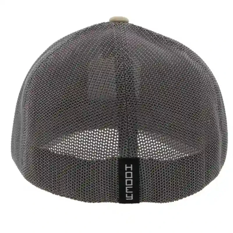 This Hooey tan and grey cap is offered in a mid-profile 5-panel version with a curved bill. FlexFit internal headband snugs to your head for the perfect fit. Available (S/M) (L/XL). The Cheyenne patch adds Turquoise to the color scheme to give it some pop!Â