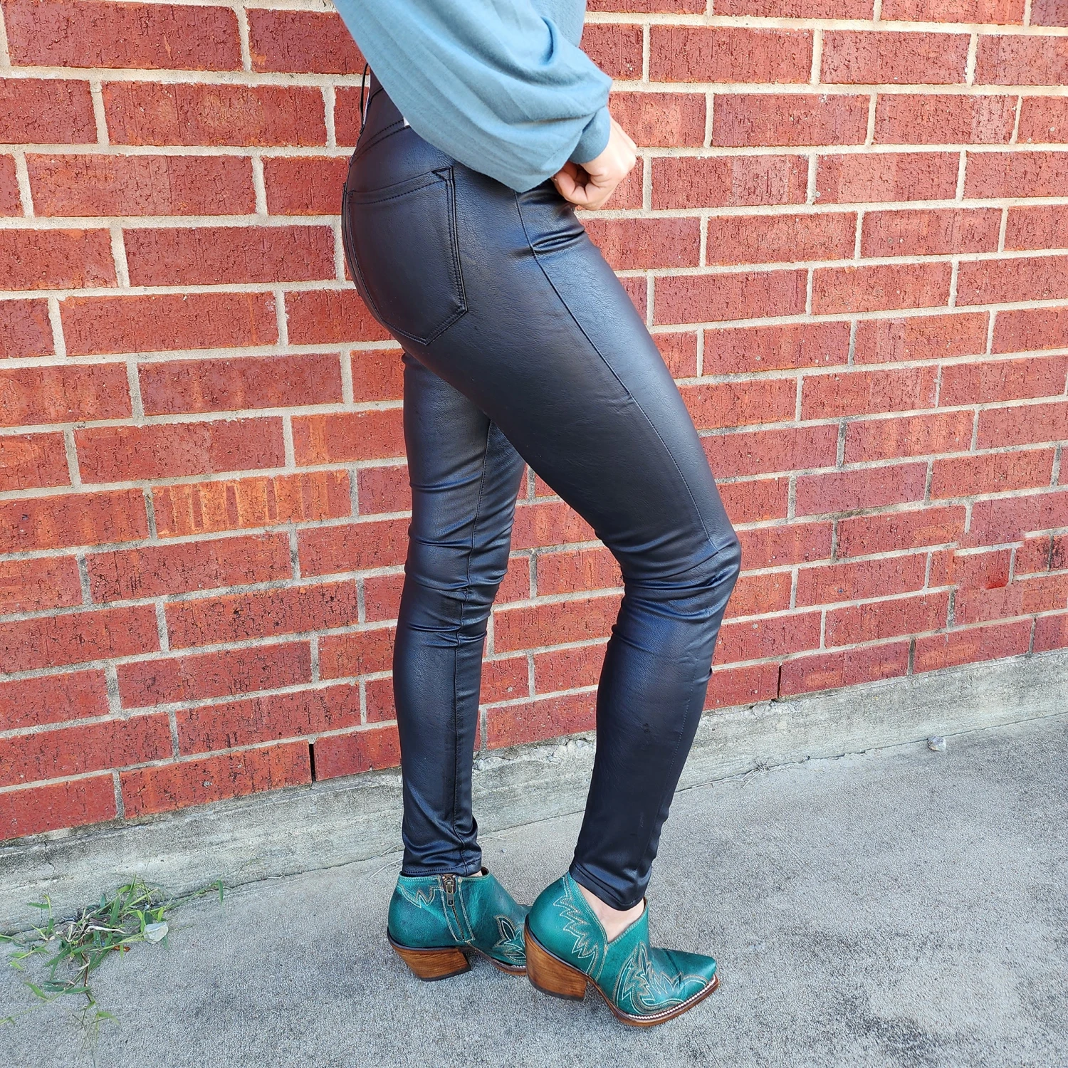 From a over sizes sweater to a sequins flashy blouse these faux leather KanCans will have you covered and looking great.
