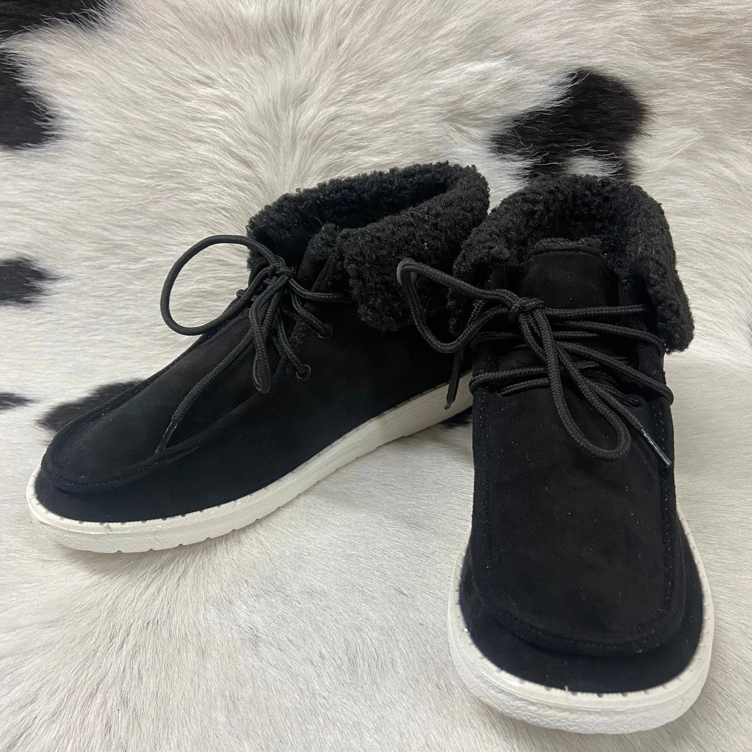 These ankle booties are perfect for keeping the feet and ankles warm in those cooler temperatures. She will stay warm and comfortable with the faux fur collar on the ankle and the cushioned insole!