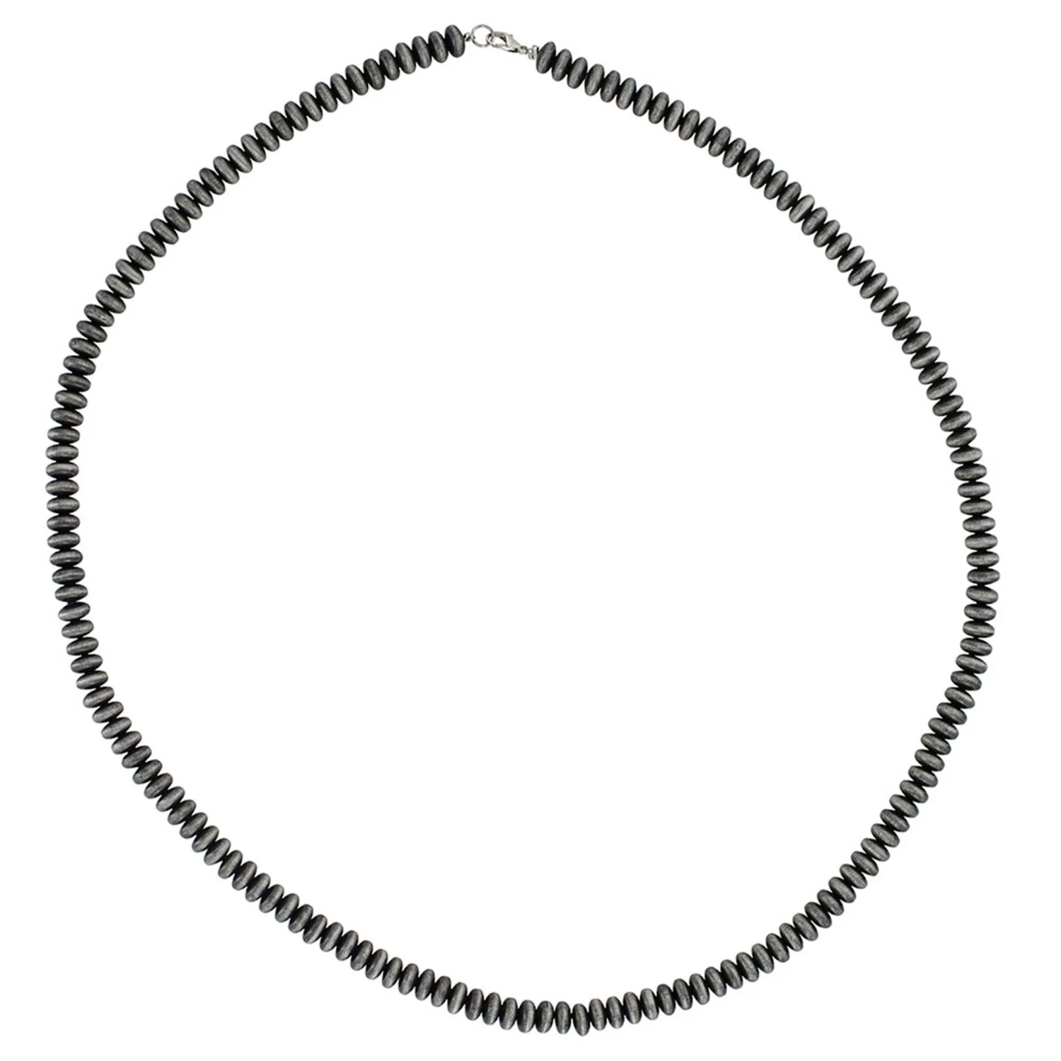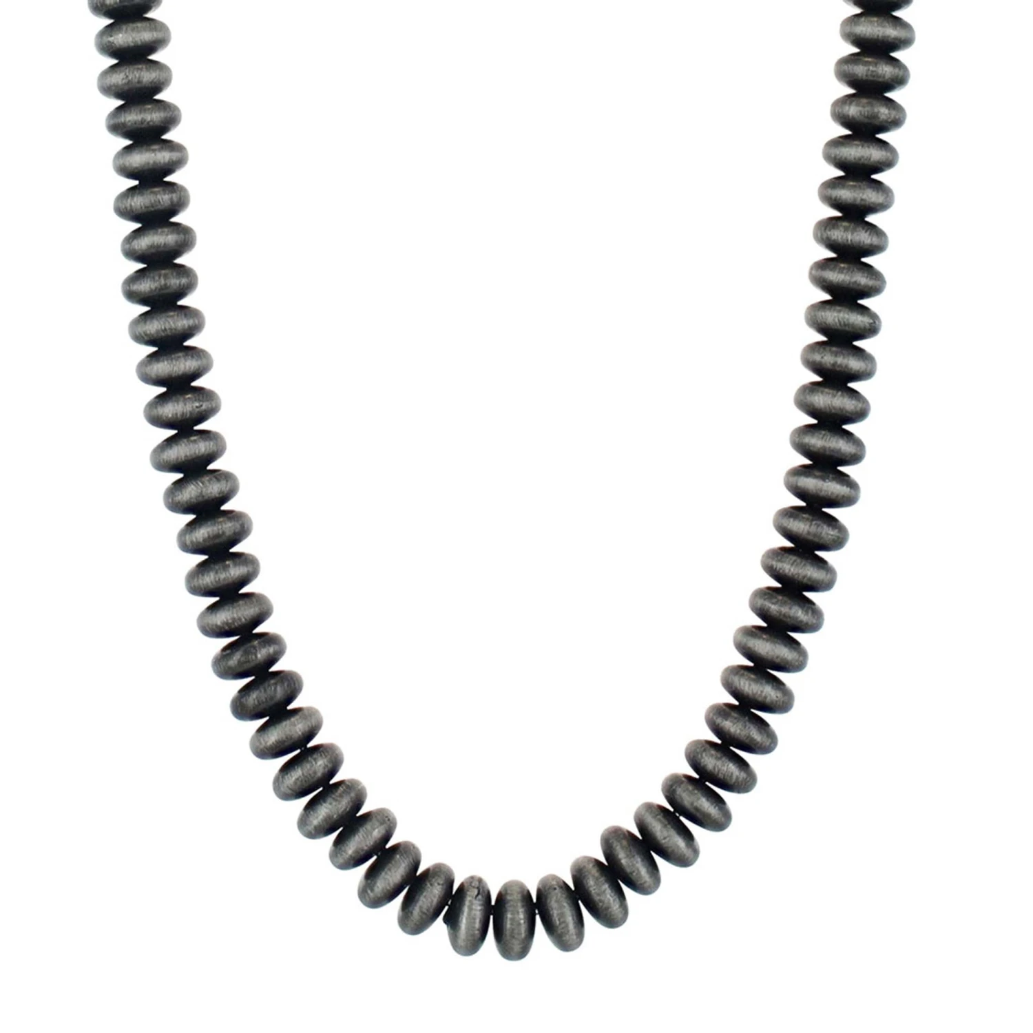 This Montana Silversmiths beaded strand necklace is perfect for every outfit with the pewter color being so neutral. The necklace has disc-shaped beads that line up and drape beautifully.Â