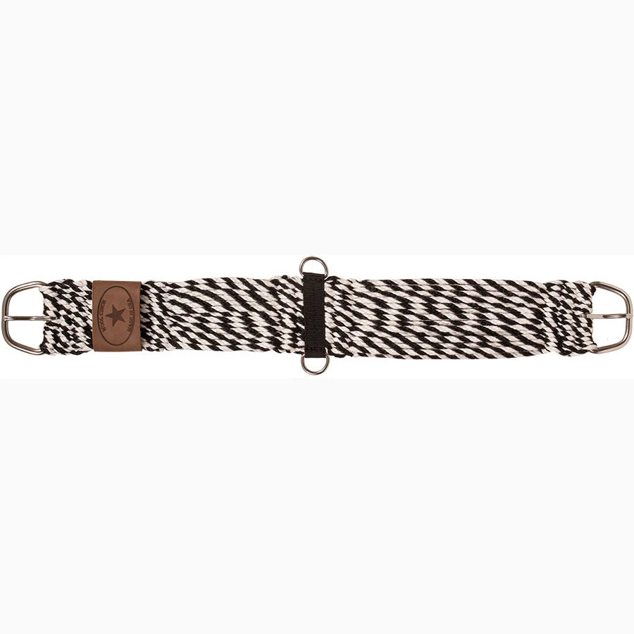 This black and white cinch from Mustang has 31 strands and a black nylon sewn center! It has a billet pocket and straight-pull stainless steel buckles. The buckles have washers on each side of the tongue to pull and hold straight to prevent galling!