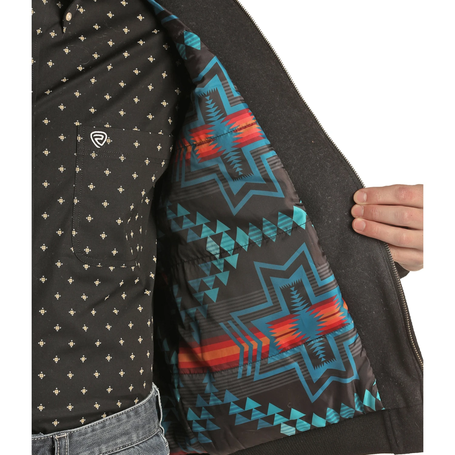 A winter time essential, this black bomber coat from Panhandle is perfect for everyday wear. From the ranch to the office, it will look good and keep you warm.Â