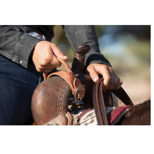 Whether you call it a Nightlatch, Grab Strap or something more “creative”, this is a handy strap to have. Buckles securely around the swell of saddle gullet hole, and has a handle that is always ready to grab and pull the rider deeper into the saddle. Harness leather with stainless steel buckle. A favorite for riding young horses and on the trail. Hermann Oak Leather, Made in the USA.