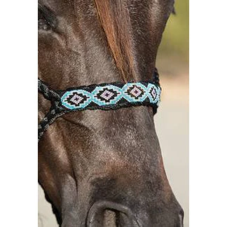This Professional Choice black braided rope halter is soft yet made of the strongest materials. It features a beautiful black and turquoise flat beaded noseband.Â