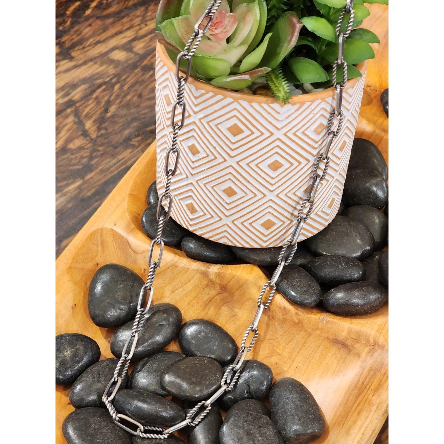 This 24 inch paper clip chain necklace is truly original with the rope looking links that are every other link, that adds so much character to this cute necklace.Â