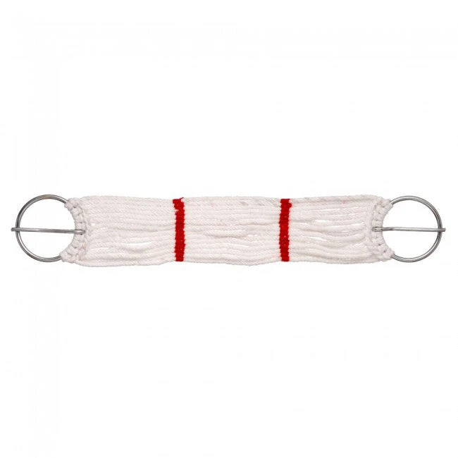 This is a traditional 13 strand acrylic cord with heavy plated tongue ring. The white color is accented with red. Â
