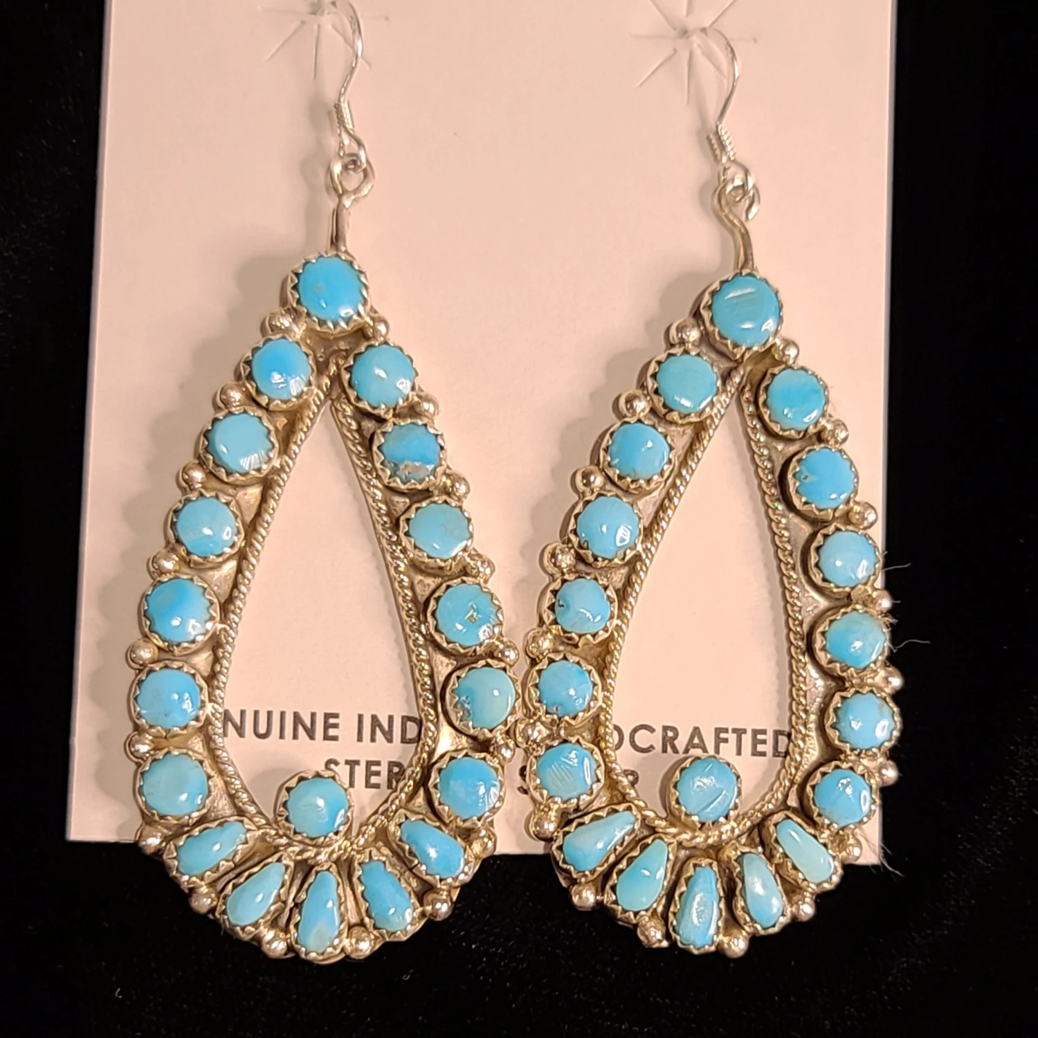 These Native American Zuni Turquoise teardrop earings with the Dot are a stunning pair to add to any collection.Â